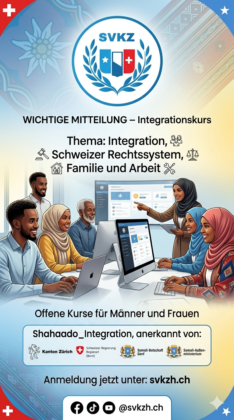 Die somalische Gemeinschaft im Kanton Zürich engagiert sich aktiv für Bildung, Integration, Gesundheit, kulturelle Identität und gesellschaftliche Teilhabe.